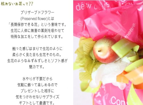 - パンパース テープ 18枚 花材:あじさい(プリザーブド) アップル 全体のサイズ:w20m×H30cm