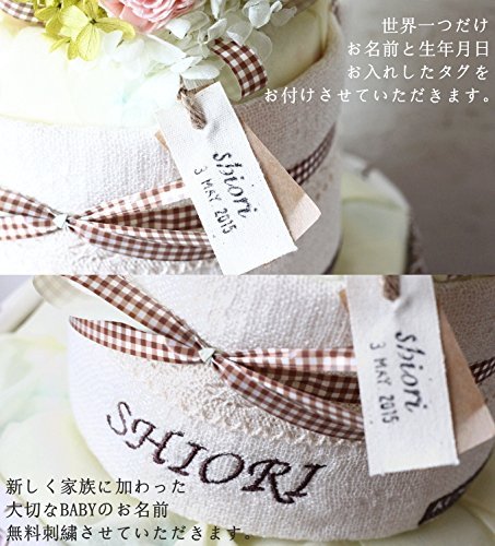 - タグにお名前と生年月日をお入れします。 今治タオルにあかちゃんのお名前刺繍が無料でできます。(刺繍ご希望の方は下記へご連絡下さい。ご連絡のない場合は無地で発送となります。)