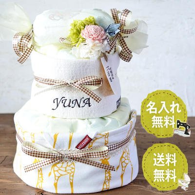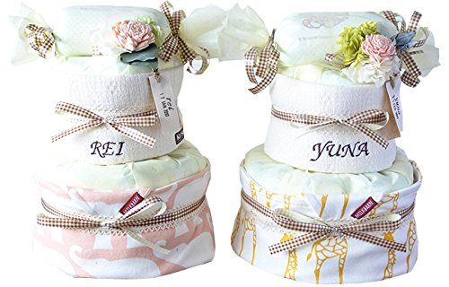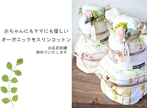 milkbarn オーガニックモスリンコットン 出産祝い おむつケーキ おしゃれスタイ 男の子 女の子 今治タオル 名入れ 生年月日タグ付き (きりん・パンパースM)