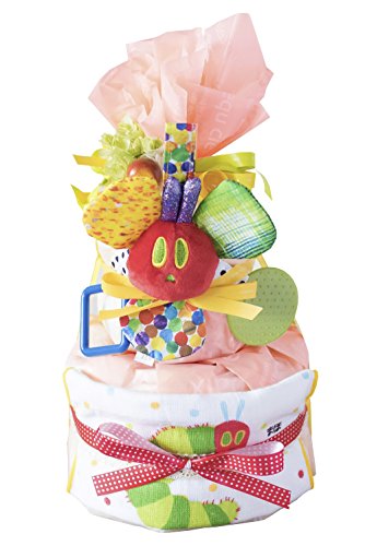 あかちゃんのお名前入り 2段 はらぺこあおむし 出産祝い パンパース18枚 男の子 女の子(M, ピンク 201)