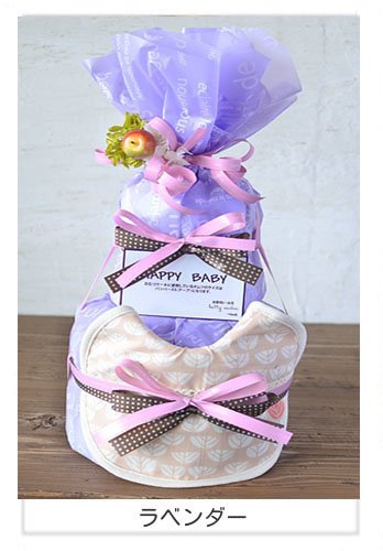 GOTS認証 オーガニックスタイに名入れができる おむつケーキ 出産祝い ギフト (M, ラベンダー)