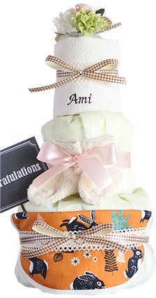 3段 オーガニック シンプル おむつケーキ 出産祝い 名入れ タオル ギフト (S, 503)