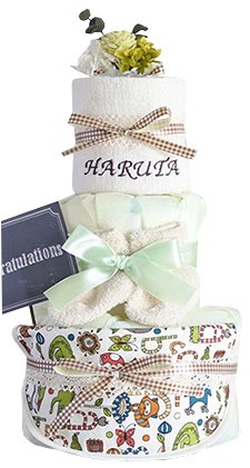 3段 オーガニック シンプル おむつケーキ 出産祝い 名入れ タオル ギフト (S, 504)