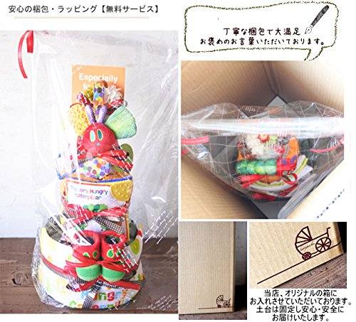 サイズ表示カード付きだからおむつケーキをしばらく飾っておくことができます。