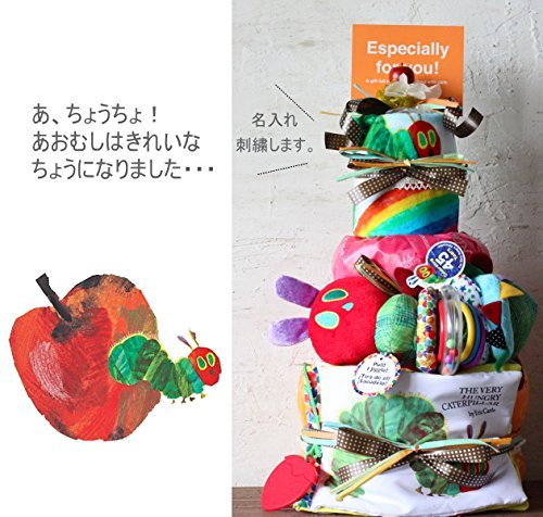 - ベストセラーはらぺこあおむしのおむつケーキ 人気のソフトブック絵本、伸び縮みする楽しいおもちゃブルブルラトル、タオル1枚付き 名入れ刺繍出来ます。