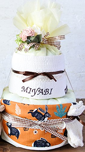 サイズ表示カード付きだからおむつケーキをしばらく飾っておくことができます。