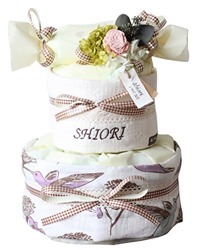 オーガニック モスリンコットン スタイ 今治タオル 名入れ 無料 (トリ,Mパンパーステープ) おむつケーキ 出産祝い ナチュラル ギフト 男の子 女の子