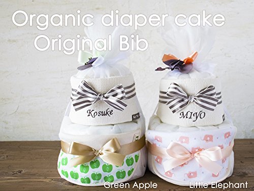出産祝い おむつケーキ 北欧 GOTS認証 オーガニック 今治 タオル 名入れ おしゃれ (オムツM, アップルグリーン スタイ)