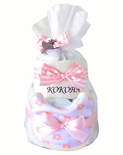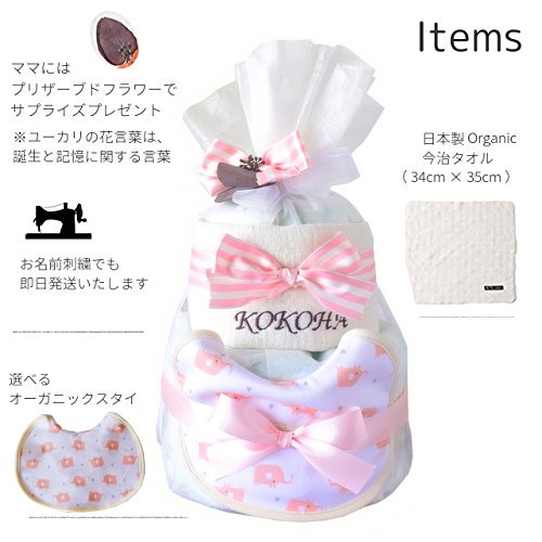 出産祝い おむつケーキ GOTS認証 北欧 オーガニック 今治 タオル 名入れ おしゃれ (M,リトルエレファント)