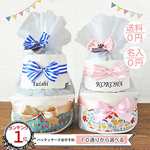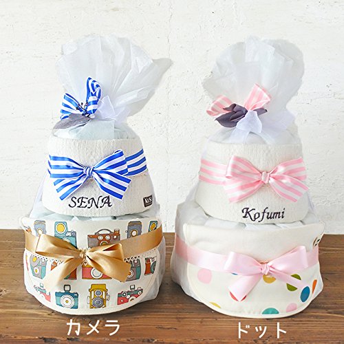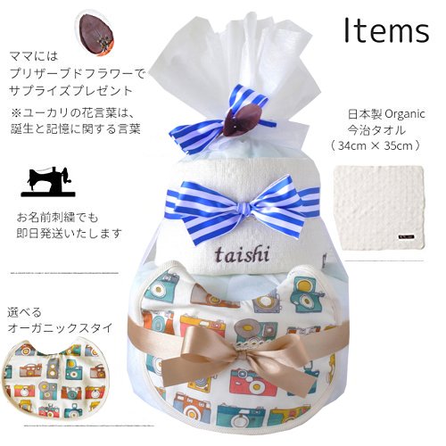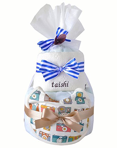 出産祝い おむつケーキ GOTS認証 北欧 ビブ オーガニック 今治 タオル 名入れ おしゃれ (M,カメラ)