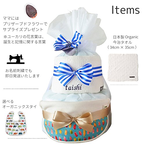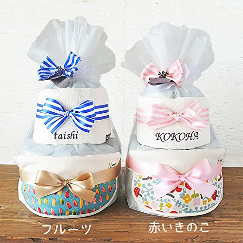 出産祝い おむつケーキ GOTS認証 北欧 オーガニック 今治 タオル 名入れ おしゃれ (S, フルーツ スタイ)