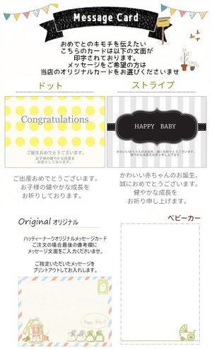 サイズ表示カード付きだからおむつケーキをしばらく飾っておくことができます。