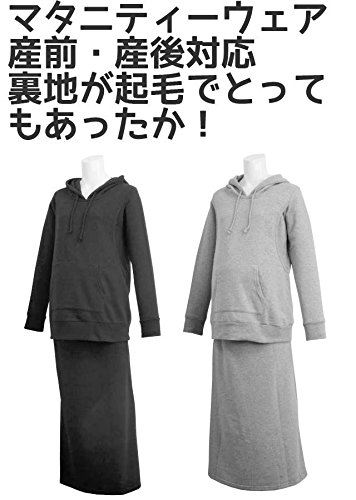 授乳服 マタニティ スウェット 長袖パーカー ロングスカート 上下セット 産前産後対応 チャコール-M8578 M