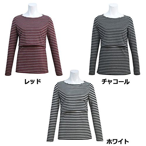 レディース マタニティ Tシャツ 授乳口付き 授乳服 長袖 母乳育児用 産後対応 M L ホワイト-M7827 L