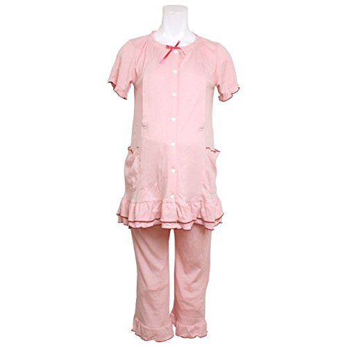 マタニティ パジャマ 授乳服 チェック柄 授乳口付き 半袖 7分丈パンツ 上下セット ピンク-M2807 M