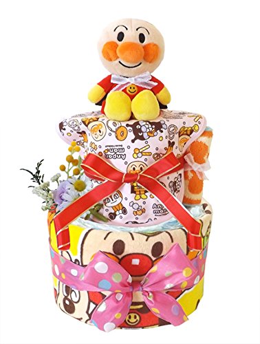 おむつケーキ アンパンマン 2段 ピンク 女の子用 (メリーズSサイズ(25枚入り), スタイB)