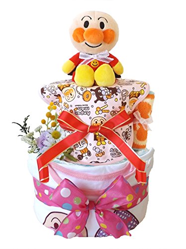 おむつケーキ アンパンマン 半袖ボディスーツ付き 2段 女の子用 B (パンパースMサイズ(21枚入り))