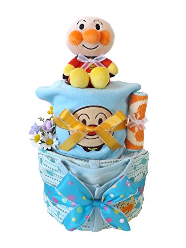 おむつケーキ アンパンマン 半袖ロンパース付き 2段 男の子用 ブルー A (パンパースS/サイズ60)