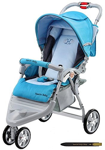 [ハネムトイ] Haenim Toy FINO PLUS ハイエンド 3輪ベビーカー, 360度回転ホイール, ワンタッチタイプ2折りたたみ, 920x440x1000(mm), 5.8kg, 2ヶ月以上, BLUE, Made in Korea, 一週間以内に到着 (海外直送品)
