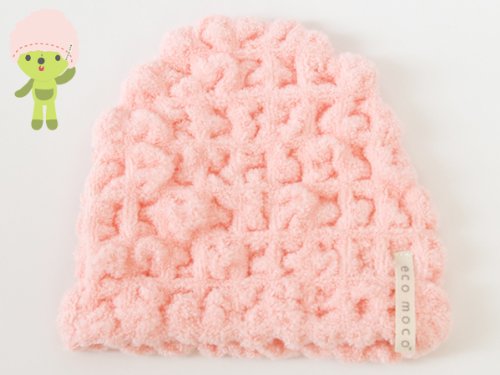 - エコモコオリジナル、モコモコタオルのベビー用帽子。長さは折り返して調節できます。のび〜るから、かぶると優しく自然にフィット。お出かけや、プール帰りにも♪♪