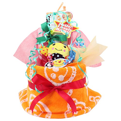 - パンパースの紙オムツとSASSYのベビートイ、ウォッシュタオルをケーキ風にデコレーションした可愛さと実用性をかねた『おむつケーキ』、ご出産のお祝いにどうぞ