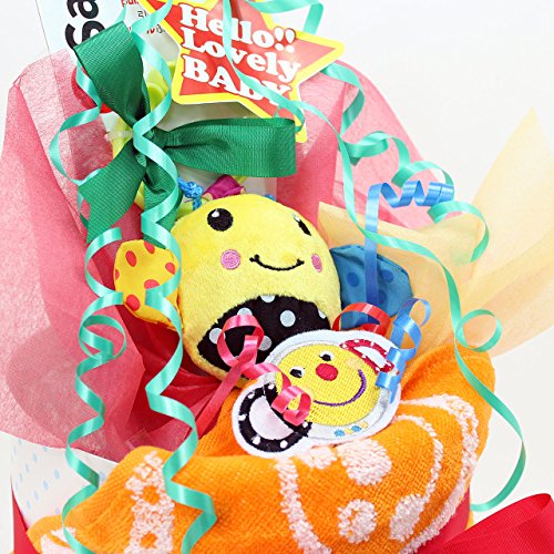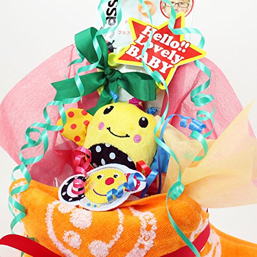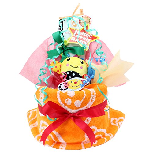 【おむつケーキ】 パンパースの紙オムツとSASSYのベビートイ、ウォッシュタオルをケーキ風にデコレーションした可愛さと実用性をかねた『おむつケーキ』、ご出産のお祝いにどうぞ 【ご注意】 ラッピングは手作業によって仕上げますので、リボンの色やデコレーションの仕様は製品によって多少異なる場合がございます。