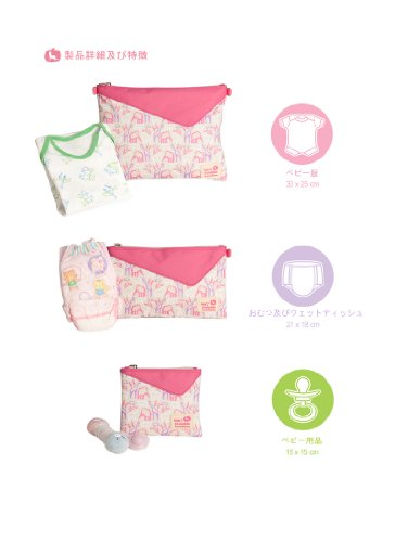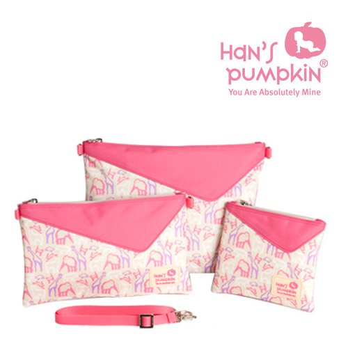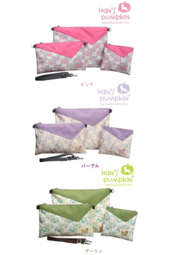 ハンスパンプキンベビー用品ポーチセットはお出かけの時、 ママさんがマザーズバッグにお子さんの用品を衛生的で簡単に整理・収納できるように 用途に合わせてサイズ別に製作しました。 また、取り付け、外しが可能なので、単独での使用もオススメします。 お子さんのものがちゃんと整理でき、必要な時すぐ出して使用できます。 用度に合わせて区別できるデザインと透明布を使用し開けなくっても中身が確認でき、防水なので汚れた服、濡れたものなどを保管するにもとても便利です。 ●SPEC ・Color:ライトピンク、ピンク、パープル、グーリン ・素材 表地-ポリエステル100% 裏地-PVC100% ・洗濯方法:手洗い ※必ず、水で洗い、汚れた部分はブラシなどで軽くブラッシングし手洗いし、 絞らないでください。 ●SIZE 大 ベビー服 33x25cm 中 おむつ及びウェットティッシュ 27x18cm 小 ベビー用品小物 18x15cm