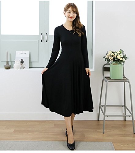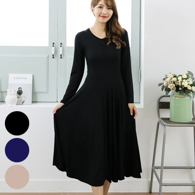 フレアデザインで美シルエットに☆シンプル 授乳ロングワンピース