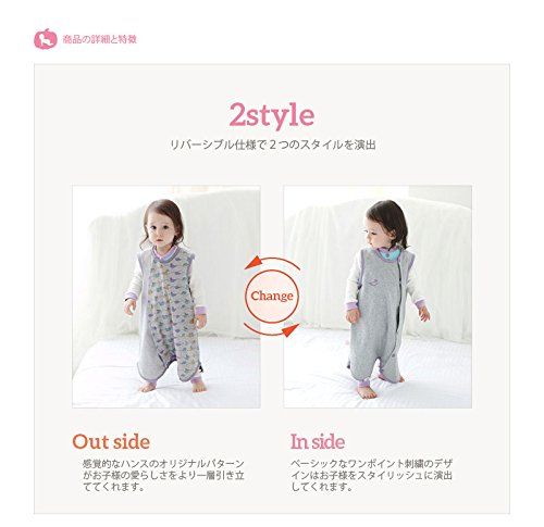 ハンスパンプキン オールシーズン用リバーシブルスリーパー フロントオープン型 サーフィン 布団を嫌がったり、睡眠中に剥いでしまうお子様の為にデザインしました。 ぐっすり心地よい眠りに導いてくれるスリーパーです。 暖かくて柔らかいハンスパンプキンのコットン生地 ハンスパンプキンでは、乳幼児の為の繊細な加工、 厳しいチェックを通過したクオリティの高い生地を使用しております。 確かな品質と生産技術で他社ブランドとの違いを実感して頂けます。 ●製品の構成 製造 made in Korea 構成 ベビースリーパー カラー グレー サイズS / M / L 材質 表地 コットン 100% 裏地 コットン 100% どうして?ハンスパンプキンのスリーパーが選ばれる4つの理由 特許庁 デザイン登録済み ハンスパンプキンのスリーパーは特許庁に登録された商品で、 子どもたちの快適な眠りのために、多くの努力を重ねて作られた製品です。 ユニークなパターン 乳幼児製品専門デザイナーのセンス溢れる独創的なデザインが特徴。 ハンスパンプキンにしかないオリジナルパターン商品をお贈りします。 お腹の冷え防止&体温維持 睡眠時は布団の代わりにお腹の冷えを防止してくれるので、 ママもお子様も安心して眠れます。 屋内外での活動時に体温を維持させ、風邪や病気を予防してくれます。 オシャレなコーディネート お子様にもママにも好まれる感性的なパターンとオシャレなカラー感で、 室内着としては勿論のこと、 外出時にもコーディネートできるようにデザインしました。 パターン 波に乗って楽しむ海のお友達たち 商品の詳細と特徴 リバーシブル仕様で2つのスタイルを演出 Out side 感覚的なハンスのオリジナルパターンが お子様の愛らしさをより一層引き立ててくれます。 In side ベーシックなワンポイント刺繍のデザインはお子様をスタイリッシュに演出してくれます。 安心のYKK製のスナップボタンは着脱しやすく便利。 リバーシブル対応で両面使えます。 眠っている間にめくり上がらないようデザインされた固定ボタン 動きやすさを考えて裾部分は、波型になっております。 ブラインドステッチ始末で縫い目が見えず、 縫い代部分がお子様の体に当たらない丁寧な仕上げ リバーシブル仕様だから2通りのスタイルを演出してくれます。 製品サイズサイズは、計り方によって1~2cm程度の差が生じる場合がございます。 サイズ S(新生児~12ヶ月) :身幅 34cm 着丈 56cm M(12ヶ月~24ヶ月) :身幅 36cm 着丈 60cm L(24ヶ月~48ヶ月) :身幅 38cm 着丈 65cm 洗濯方法と注意事項 ・お子様が付属品を飲み込まないようご注意ください。 ・損傷の原因となることがありますので、着脱の際はスナップボタン部分を持って優しく取り外してください。 ・中性洗剤で洗濯機ご使用の際は必ずネットに入れ、手洗いコースまたはドライコースで洗濯してください。 ・30度以下のぬるま湯で必ず単独手洗いしてください。 (生地の損傷の原因となることがございますので、やさしく洗ってください) ・長時間水に浸しておかないでください。 (収縮や色移りの原因となり、生地が傷む場合がございます)