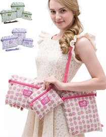 スタイリッシュベビー用品ポーチセット パンプキンアイビー ベビー用品ポーチセットは、ベビー用品を衛生的かつすっきり整理できるよう、様々な用途に合わせサイズ別に作られたポーチです。 スタイリッシュベビー用品ポーチ外出時や旅行時、携帯する物が多いママの為の便利で実用的なポーチ 3点セットです。 必要に応じてすっきり整理することができます。 構成 ベビー用品ポーチ 3点 + 取り外し可能ショルダー・トート兼用ストラップ サイズ(誤差範囲 ± 2cm) L 横 23cmx縦 29cm M 横 25cmx縦 19cm S 横 17cmx縦 15cm 材質 ポリエステル(ポリウレタン防水コーティング) カラーピンク/パープル/グリーン ハンスパンプキン スタイルベビー用品ポーチセット 用途に合わせて使える3つのサイズ 可愛い用途別ラベル付きで整理も簡単 L ベビー衣類入れ(横23cm x 縦 29cm) 外出時や保育園用に、お着替えが上下で最大3セット収納可能 M おむつ、おしり拭き入れ(横25cmx縦19cm) 衛生的でおむつ保管にピッタリのサイズ、Mサイズおむつが 最大 6枚収納可能 S ベビー用小物入れ(横17x 縦15cm) 小さめサイズで赤ちゃんオモチャ、おしゃぶり、薬等の収納に最適 シーンに合わせて4つの形態で活用 オシャレなデザインと様々なサイズで外出時、 4つの方法で活用可能です 簡単な外出に、保育園用に、マザーズバッグの整理に、ベビーカー用バッグに 商品詳細及び特徴 カラー感が引き立つパンプキンアイビーパターン 3つのサイズで用途に合わせて収納可能 ポリウレタン加工で汚れ防止及び生活防水機能 可愛い用途別ラベル(衣料用、おむつ用、ベビー小物用) 両サイドにフックがあるので、別途ストラップを装着すればベビーカー用収納ポーチとしても使用可能 (ストラップは別途 要購入) ごちゃごちゃしやすいマザーズバッグの中身をきれいに整理、収納