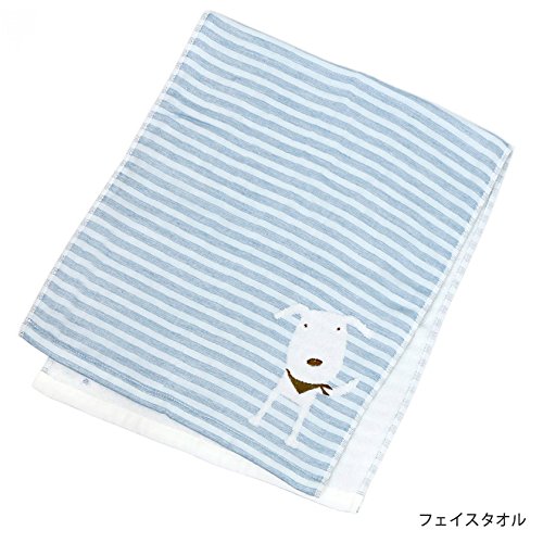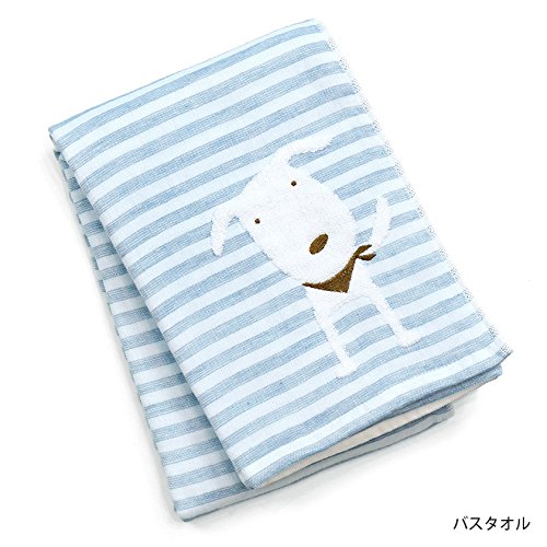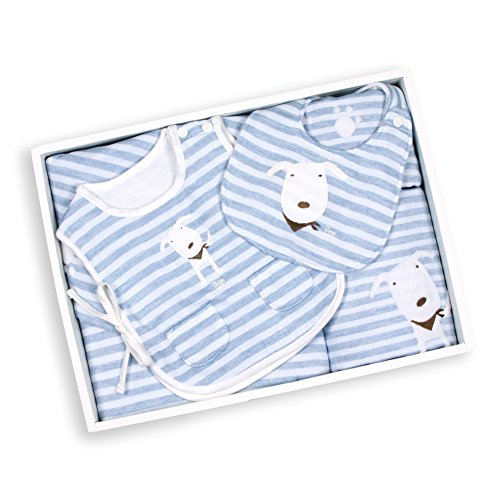 今治タオル PONちゃん ベビーギフト 化粧箱 手提げ袋 ラッピング込 (ブルー, 5点セット)