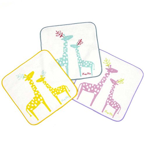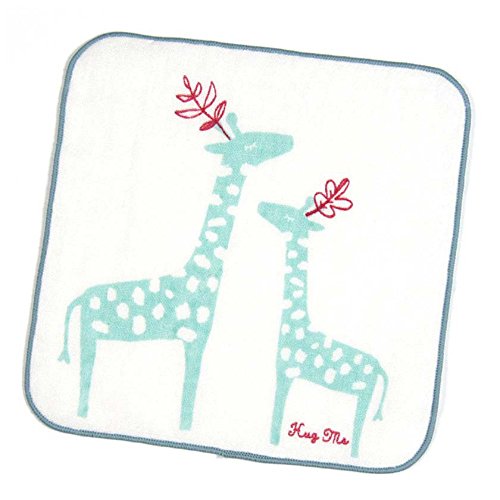 今治産ガーゼハンカチ 20x20cm HugMe ジラフ (ブルー)