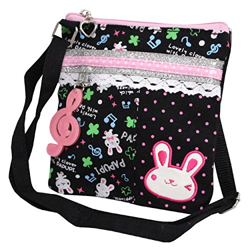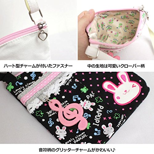 パプピ ポシェット 女の子 キッズ ウサギ キャラクターバック ショルダーバック 子供用 ブラック F
