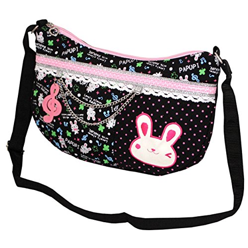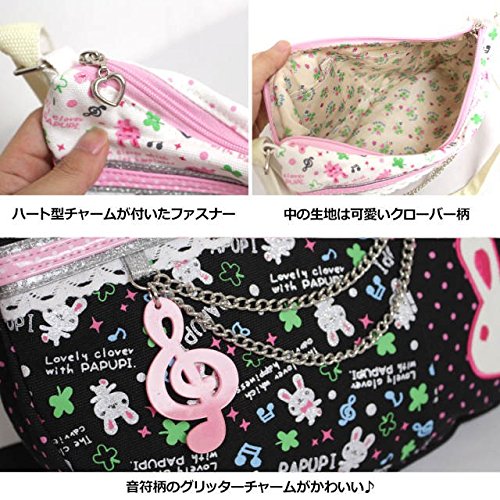 パプピ ショルダーバック 女の子 キッズ ウサギ キャラクターバック キャンバス 子供用 ブラック F