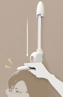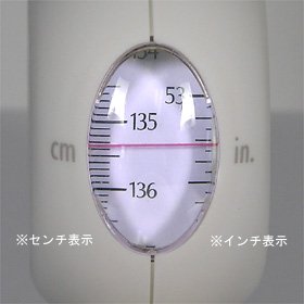 壁に設置し、本体を頭頂に当たるまで降ろすと、正面の丸窓に身長が表示されます。