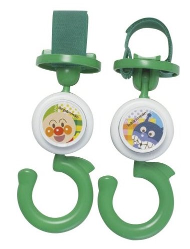 ベビーカーに取り付けてかばんをかけられるフックです。なき笛つきなので、外出先でもお子様をあやせます。