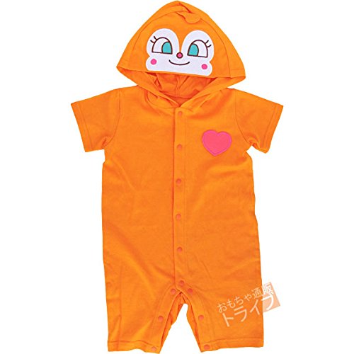 ドキンちゃんになれちゃう!?かわいいカバーオールです。半袖で、オールシーズンお使いいただけます。股下もスナップで、着脱が簡単です。フードにキャラクターの顔がプリントされていてとってもキュート!おでかけにもオススメです。