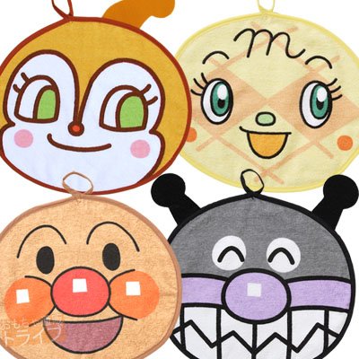 丸型タオル 4絵柄組(アンパンマン・バイキンマン・ドキンちゃん・メロンパンナちゃん)