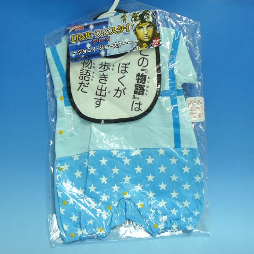 あの『ジョジョの奇妙な冒険』のロンパース(ベビー用つなぎ) これさえ着れば赤ちゃんがなんとジョニィ・ジョースターに大変身 名台詞「この『物語』は、ぼくが歩き出す物語だ」と書かれたスタイ(よだれかけ)もついたセットです ジョジョ好きな方へのプレゼントやご出産祝いなどに是非ご利用下さいっっ 『オラオラオラオラオラオラアッ 』