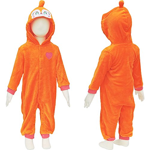 ドキンちゃんになれちゃう!?かわいいカバーオールです。起毛の生地でもこもことしてあたたかく、フードからズボンまでのオールインワンで可愛く仮装できちゃいます。スナップボタンでお着替えも簡単。細めのデザインなので、ジャストサイズより小さなお子様向けです。静電気が発生しやすい生地ですので、お出かけの際はお気を付け下さい。