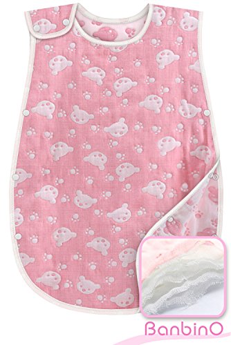 バンビノ ベビー 8重 ガーゼ スリーパー 6重より柔らか お昼寝 寝冷え 防止 出産祝い ベビーサイズ60㎝ (新生児~3歳頃) (くまさんピンク)