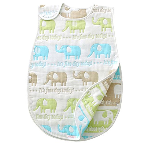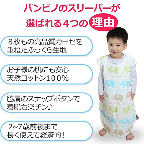 バンビノ キッズ 8重 ガーゼ スリーパー オーガニックコットン 幼児 寝冷え防止 6重より柔らか キッズサイズ (2歳~7歳頃) (象さん)