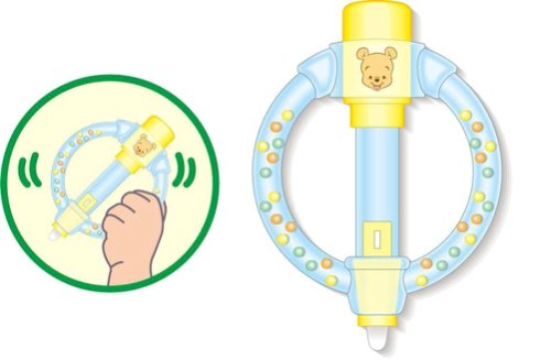 ![]() | 専用ペンは、小さな子どもでも持ちやすい形。振ると音が鳴る。 |
