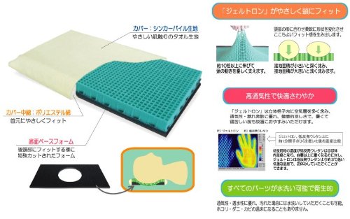 寝返りがはじまった頃から5歳位までの子供専用枕です。ジェルトロンというグミのような独特の素材がしっかりとお子様の頭を支えます。汗っかなお子様でも後頭部の汗を軽減できる通気性の高い立体構造です。丸洗いもできるので清潔に保て安心してお使い頂けます。