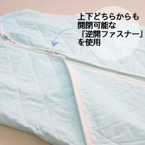 - ■特徴 ・上下どちらからも開閉可能な「逆開ファスナー」使用 おむつの交換などにも大変便利です。 ・ご家庭の洗濯機で丸洗いOK! ・ 「エコテックス」クラス1認証 だから安全。 ・脱脂綿・ガーゼ素材の、抜群の通気性と吸湿性で、夏は涼しく、冬はムレずに、一年を通して快適にご使用いただけます。 ・医療用に使用される、脱脂綿とガーゼが素材だから安心。。 ・アトピー・アレルギーの原因物質を含まず、安心してご使用いただけます。 ・蛍光増白剤はもちろん、柔軟剤や各種仕上げ剤、糊も使っていない、無添加素材。 ・速乾性に優れているから、洗濯後の乾きが早い。 ・脱脂綿には、睡眠中に身体から出る汗・ガス・臭いやほこり汚れを吸収するなどの優れた清浄効果があります。 ・干すときは、縮まないように両手で軽く伸ばしてください。 ・ファスナー破損や布地の損傷を防ぐため、お洗濯前には、必ずファスナーを閉じ、上スライダーと下スライダーを上下の端に固定して下さい。