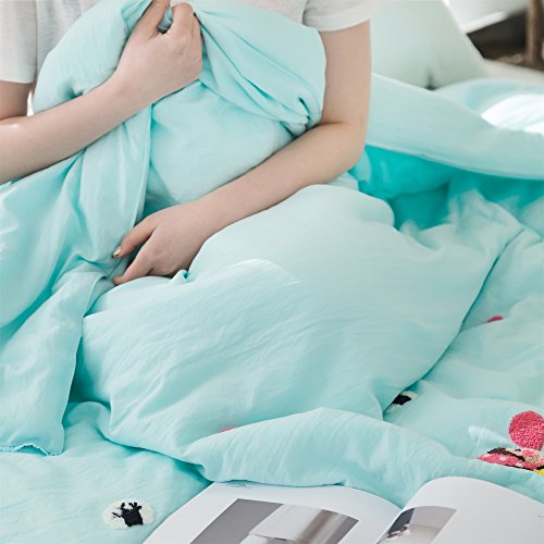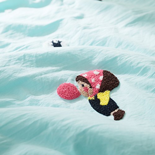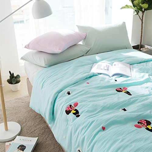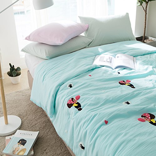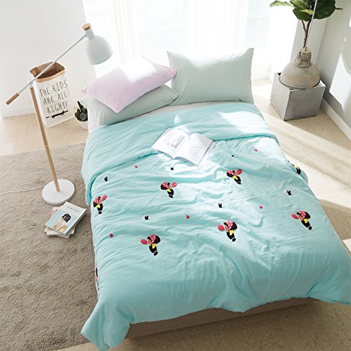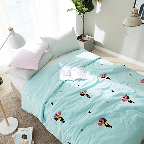 綿花世界 可愛肌布団 空ブルーダブルサイズ洗濯機で丸洗いキルトケット 高級タオル刺繍の可愛女の子気球を吹く模様なサラサラタッチの寝具・夏布団・サマーケット 通販コンビニ・ATM・ネットバンキング・電子マネー払いが利用でき 便利