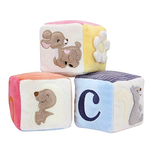 握ったり、振ると音がする、動物たちのかわいい刺繍の入ったソフトブロックセット。