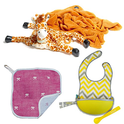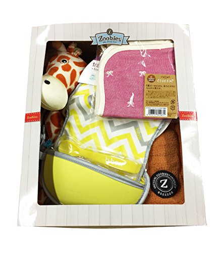 ブランケットにもなるぬいぐるみのズービーペッツに、お出かけ先で使えるビブと6重ガーゼでできたハンカチをセットにした、出産祝いにぴったりのギフト商品です。
