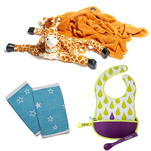 ブランケットにもなるぬいぐるみのズービーペッツに、お出かけ先で使えるビブと6重ガーゼでできた抱っこひものベルトカバーをセットにした、出産祝いにぴったりのギフト商品です。