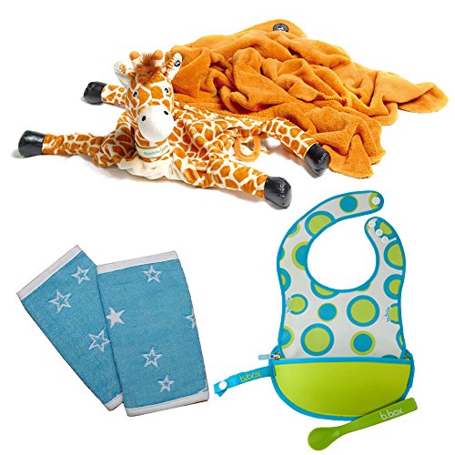 ブランケットにもなるぬいぐるみのズービーペッツに、お出かけ先で使えるビブと6重ガーゼでできた抱っこひものベルトカバーをセットにした、出産祝いにぴったりのギフト商品です。